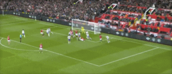 第23分钟,B费右侧角球传中,马奎尔后点头球摆渡,迪亚洛头球接力,被大马丁神勇扑出!